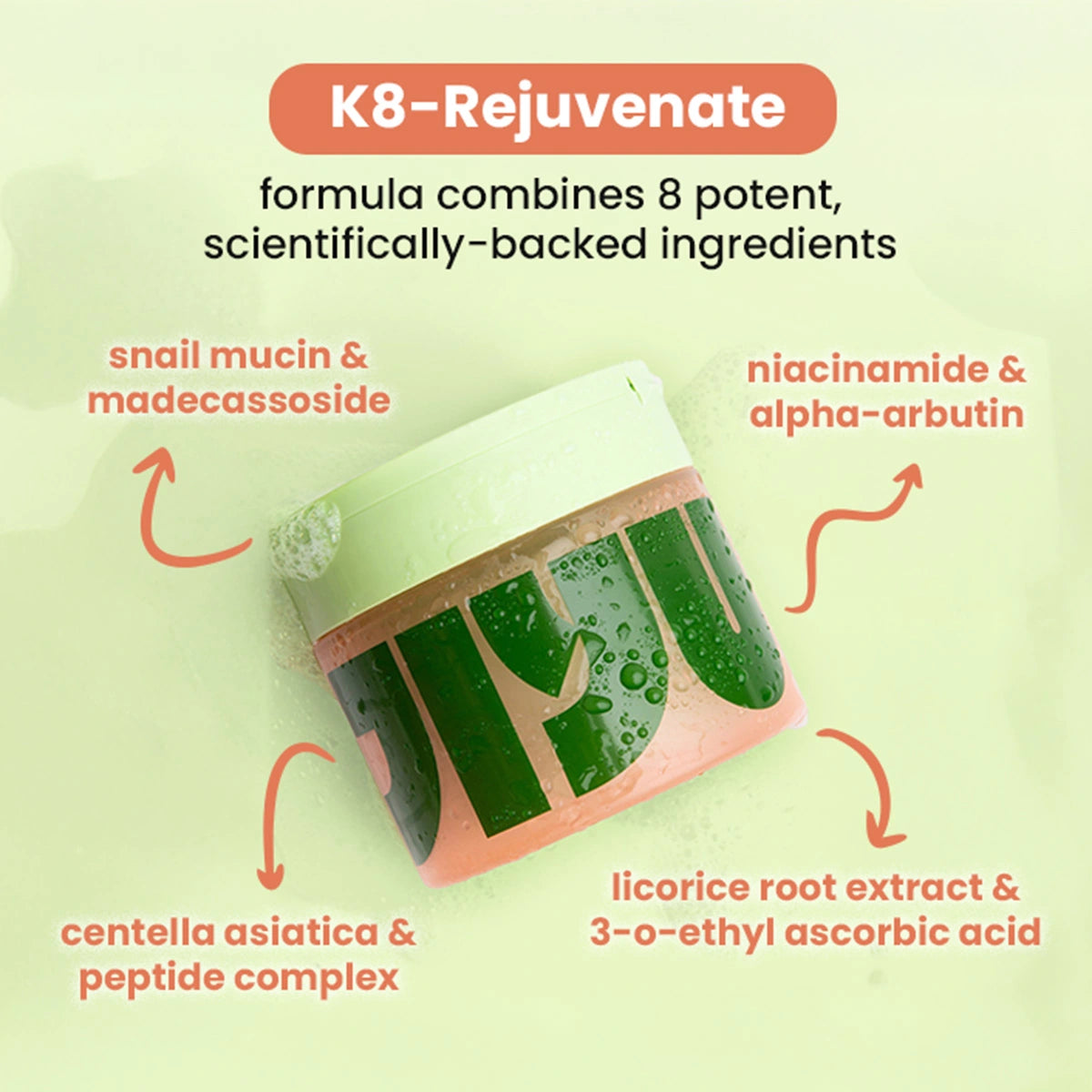 We've made our pads from natural effective Korean beauty ingredients - snail mucin, which is known for its intense hydrating & anti-aging properties that visibly reduce wrinkles and firm skin, while niacinamide brightens dark spots and hyperpigmentation by gently evening out skin tone, making your skin youthful & rejuvenated in just a few days!
